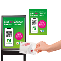 Machen Sie auch vor Ihrer Offizin bzw. Apotheke auf die App aufmerksam und integrieren Sie die Content-Schleife zur Bewerbung der App in Ihr digitales Schaufenster.