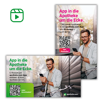 Der Download beinhaltet vier Versionen. Eine hochkant zur Bewerbung der apotheke.com-App und eine quer. Zudem gibt es eine Version zur Bewerbung von apotheke.com und IhreApotheken.de in Kombination in Hoch- und Querformat.